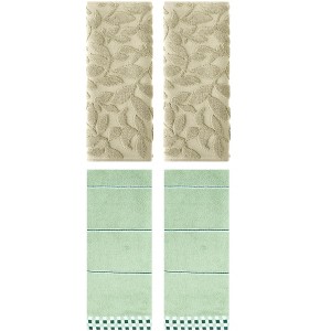 - 4 pcs hand towels, Striped Checked hand towels: 2pcs, 14" x 30", 100% cotton ; Jacquard Pattern hand towels: 2pcs, 14" x 30", 100% cotton