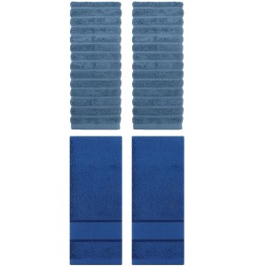 REGALWOVEN 4 Pcs Cotton Quick Drying Soft Striped Hand Towel 14" x 30"