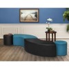 Regency's line of plush ottomans adds a modern feel to any casual area. The Aurora ottoman's unique semi-circle shape makes it perfect for sofas, loveseats or in lounges and waiting areas. Place with chairs and existing furniture or use on its own as extra seating. The Aurora is upholstered in a soft and durable Peacock Teal vinyl and includes leveling glides to ensure a level surface.