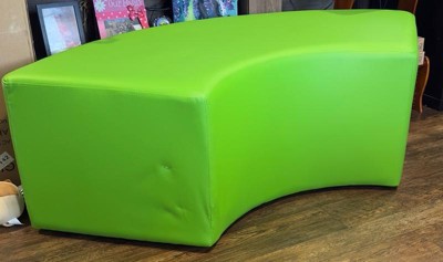 [This review was collected as part of a promotion.] This curved ottoman sure fills the room with its bright color and great size, fits two medium size adults or three kids, it definitely needs to be placed in a nice corner in between sofas as an elbow or it won’t look good. Unfortunately I don’t have a better picture as it is too big for the space I have available for it but it definitely is an excellent piece of furniture of the greatest quality and I recommend the brand for sure.