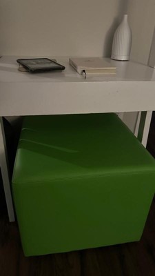 [This review was collected as part of a promotion.] I received this ottoman/stool through Influenster. It's fairly large as it stands about 18 1/2 inches tall and and 21 g 1/2 inches in width. It would be a great addition to an office that might have children present. It's stitched together very well and has held up to my children playing on and climbing all over it. It's a bright green which is a fun and playful addition to their room. It would be great on a covered patio or in a four seasons room as a stool/bench at home as well. Overall it seems to be of great quality and easy to wipe off and clean. I would definitely recommend it.