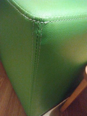 [This review was collected as part of a promotion.] This stool looks like it could be very comfy. Once you sit on it, it feels like a wooden box with the thinnest of cloth on it. It does seem pretty sturdy. The envy green is a very bright neon green color and would not match the esthetics of most conventional decor. It comes as one piece so no assembly is needed. Would not recommend!