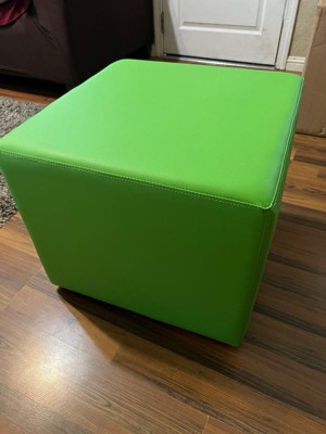 [This review was collected as part of a promotion.] I received this ottoman/stool through Influenster. It's fairly large as it stands about 18 1/2 inches tall and and 21 g 1/2 inches in width. It would be a great addition to an office that might have children present. It's stitched together very well and has held up to my children playing on and climbing all over it. It's a bright green which is a fun and playful addition to their room. It would be great on a covered patio or in a four seasons room as a stool/bench at home as well. Overall it seems to be of great quality and easy to wipe off and clean. I would definitely recommend it.