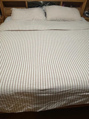 Full/Queen Relaxed Linen Stripe Duvet Cover & Sham Set Cove & Parchment - Parachute for Target