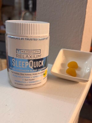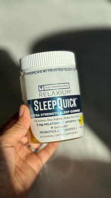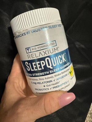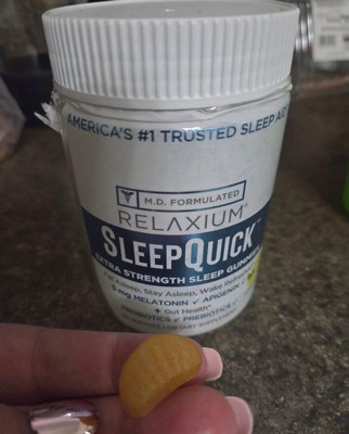 [This review was collected as part of a promotion.] RELAXIUM sleep quick gummies I received complimentary from Influenster for my honest opinion and I've been using them for 2 weeks now. I take 2 gummies 30 minutes before bed and have regulated my sleep schedule. I would have a hard time falling asleep and wake up tired in the morning. Now just in 2 weeks my sleep has changed. I get a full 8 hours sleep and no grogginess or tired feeling in the morning. Now I take them as needed .Great zesty lemon flavor and great easy to chew gummy makes me enjoy taking them .Highly recommend