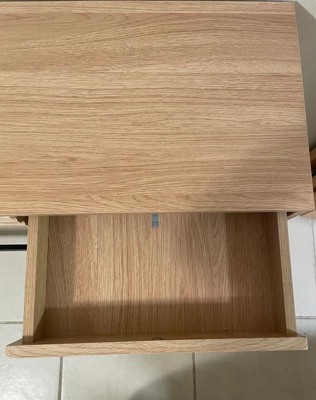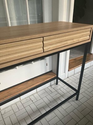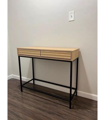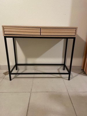 [This review was collected as part of a promotion.] I’ve been looking for a nice entryway table in this one is so cute! It’s minimalistic but has a really nice look overall and can hold a good amount inside the drawers. It took less than an hour to put together and seems fairly sturdy!