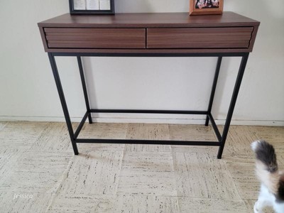 Ren Home Jarrel 2 Drawer Console Table with Black Metal Legs, Walnut