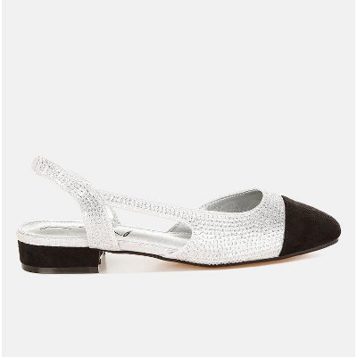 These versatile sandals are a dream come true for any special occasion – from weddings to parties and cocktails, they've got you covered! Crafted in premium microfiber with a touch of glitter, they are beautifully adorned with delicate rhinestones and a comfortable slingback strap. Type: Sandals Upper Material: Microfiber + Glitter Outer Sole: TP Rubber Closed Square Toe Rhinestone Embellishments Comfortable Slingback Strap Square Low Block Heel Plush Cushion Insoles Heel Height: 1 inch SH5448