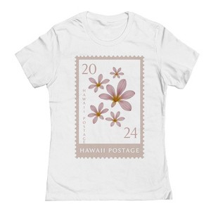 Rerun Island Women's Hawaii Postage Flowers Short Sleeve Graphic Cotton T-Shirt - White S