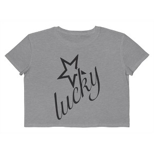 Rerun Island Women's Lucky Stars Black Short Sleeve Graphic Cotton Cropped Loose T-shirt - Athletic Heather S - 1 of 4