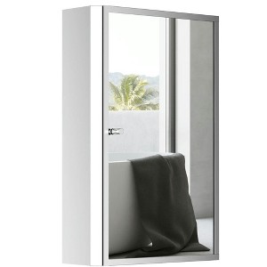 Resenkos Bathroom Mirrored Cabinet, Vertical 16" x 24" Stainless Steel Frame Medicine Cabinet, Wall-Mounted Storage Organizer with Single Door Silver