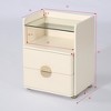 This elegant bedside table features a striking design that combines fashion and functionality.The bedside table is composed of tempered glass and high-quality wood, and its beige appearance makes it easier to integrate into the overall decoration design