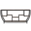 Rustic wood shelves and a black metal frame combine to create an industrial chic console table, perfect for adding character to your space. Our table offers 7 shelves of room for your books, photos, vases, or other decor. The unique staggered design adds