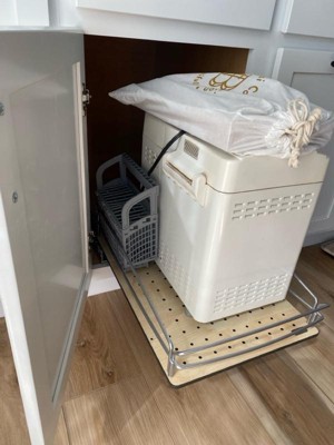 [This review was collected as part of a promotion.] This is a durable pull out cabinet organizer which makes it so much easier to store and pull out bulky appliances I use on the daily basis like my blenders. It was a breeze to install and I love that it has a soft close mechanism.