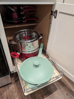 [This review was collected as part of a promotion.] Thank you for letting me try this bottom drawer pull out shelf! I love that it soft closes, helps to keep anything from slamming or jostling around! It helped me so much in the kitchen with my pans!