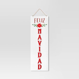 Wish happy holidays to everyone in Spanish style with the Reversible "Felices Fiestas" to "Feliz Navidad" Wood Wall Décor from Wondershop™. Designed in a red and white color palette, this vertical-alignment wall decor features the message "Felices Fiestas" on one side and "Feliz Navidad" on the other side for a festive appeal. Made with wood, this reversible wall decor comes with a built-in loop for easy hanging.
