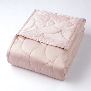 I was totally in love with this blanket when I first put it on my bed. I like the weight, looks really great (especially for the price!), and kept me much warmer than I would have expected from a blanket of this weight. However, within a couple of weeks the stuffing started coming out. There is no damage to the blanket, and it hasn’t been washed. I just noticed that the “poly fill” started poking out from the top of the blanket. At first I just snipped the pieces off, but it just got way out of hand. I’m really unhappy with this purchase. If it were for a guest room or something that’s not used daily, I would probably go ahead and buy it. But for everyday use, I highly suggest to steer clear of this one. Also, the bottom side feels really nice, but the top (“shiny”) side is awful. I keep my skin moisturized, but if my hands run across the top of this blanket, it feels really rough. Makes it feel like my skin is dry. My son felt and said the same thing. I’m glad I got it on sale, but still feel that I wasted the money because it’s not something I can continue to use. Target can do better than this for sure!