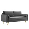 Revive Performance Velvet Sofa Gray - Modway: Stain-Resistant, Gold Legs, Includes Bolster Pillows