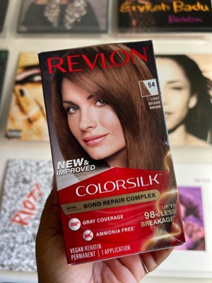 New, improved Revlon ColorSilk with Bond Repair Complex + Vegan Keratin Fillers does more than color your hair—it helps repair it from the inside out, for hair that looks and feels stronger and healthier. Up to 98% less breakage* and up to 94% silkier* 9X shinier hair.* The salon-quality formula still delivers everything you love: 100% gray coverage, zero ammonia** and a no-drip gel texture. Expect everything from the #1 hair color in the U.S.† Works on all hair types and textures.