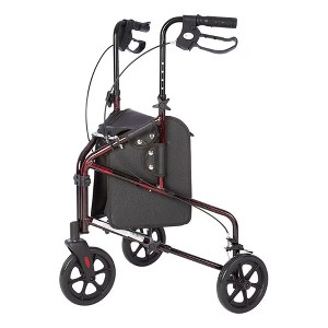 Rhythm Healthcare Rally Lite Aluminum 3-Wheel Folding Walker with Tote, Red