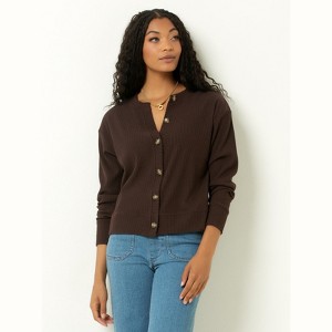 Ribbed V-Neck Cardigan - 1 of 4