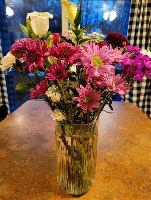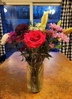 I needed a vase for the large bouquet of flowers my hubby likes getting for me at Wegmans. This large vase fits the bill perfectly. The ribbed texture gives it a better than basic look, and for only $10, this is a great deal.