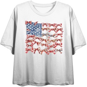 Ribbon American Flag  Women's Crew Neck Short Sleeve Top - 1 of 3