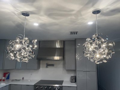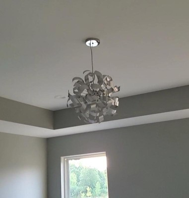 [This review was collected as part of a promotion.] Fixture installed well and beautifully compliments the new space. My only complaint was that there was a lot of individual pieces of protective plastic to remove from all of the lights.