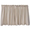 Reminiscent of a classic cabin in the woods, coastal cottage by the sea or a fresh take on farmhouse chic. The bold and vibrant check pattern adds charm, elegance and a splash of color to any room all year round! Shown as a complete set which includes, swag pair, insert valance and tier pair. All items sold separately. This tier pair is 100% yarn-dyed premium quality cotton, which is soft to the touch, allowing it to hang beautifully. The fabric prevents sun-fading, is light-filtering and lends itself to timeless beauty. Available in four traditional colors: black/cream, navy blue/cream, burgundy/cream, and natural/cream. Instantly elevate any window in your well-appointed home with this 70"W pair (35"W per panel). For a breezier and more casual look, this charming design comes in multiple lengths 24"L, 30"L and 36"L measured from top of rod pocket to bottom hem. Great for layering or can stand on its own. Whether you hang this tier pair on its own, paired with insert valance or with a matching swag pair, this richly woven fabric will add fullness to any window. This unlined swag pair features a 2" rod pocket and 1 1/2" header for effortless installation onto your preferred hanging rod (not included). 100% FINE COTTON FABRIC: This fine cotton fabric is both casual and elegant, creating a warm look and feel in any space. This gorgeous and unique fabric creates the perfect amount of light filtering, while allowing the curtain to hang gracefully and beautifully in any room