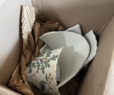 This was probably a nice planter. Unfortunately it arrived smashed to smithereens with almost no packing material to protect it.