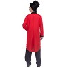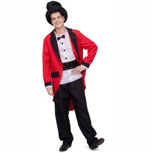 The show must go on! This fun Ringleader costume features a red jacket, white shirt with an attached black bow tie, and black pants that give you the right blend of dashing stage presence. The jacket features long tails that fall to the back of your knees, black cuffs, and lapels. Completing this costume is a black top hat. All these components together are designed with high durability so you can hop into the center ring as often as you like! A Toynk exclusive!