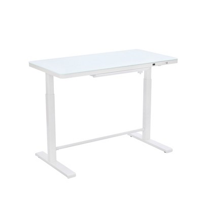 Rise Up Glass Electric Standing Desk White Adjustable Height Legs 23.7x 45.3” White Glass Desktop Sit Stand Desk Uncaged Ergonomics