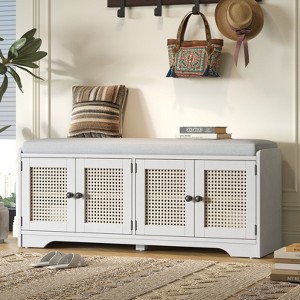 Product Name: RISOKEYS Rustic Shoe Rack with Removable Cushion & Woven Rattan Doors - Multifunctional Bench,Adjustable Shelves for Hallway,Entryway,White