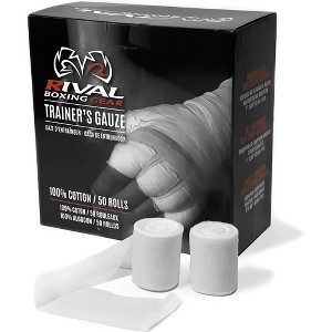 As a result of over 40 years of wrapping professional fighter's hands, Rival came up with the best gauze ever manufactured for the boxing world. A soft, surgical gauze with a tight weave, this gauze is so supple it fits perfectly into every crease and fold of the hand. The rich, 100% cotton feel also helps in making the best pre-pads possible. Boxing trainers and cutmen from all over the world have trusted the Rival gauze to ply their trade. The gauze comes in a box of 50 rolls.