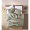 Relax with this soft and beautiful washed linen/cotton bed set that acts like a comforter, but washes and changes seasons like a duvet set! This linen/cotton cover comes filled with a 6-loop poly filler tied into place on the inside to stop the filler from moving while you sleep in bed. When the seasons change, or it becomes ready for washing, the insert can untied and removed for washing, or replacing with a down or alt down comforter. The pre-washed linen feels like an old fried or your favorite shirt. Imported.
