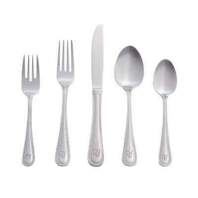 Our RiverRidge® Beaded Stainless Steel Flatware Collection features a classic and versatile design with elegant beaded detailing that coordinates with any table setting. Our 46-piece flatware set with service for 8 and a 6-piece serving set is ideal for daily use and special occasions. Crafted from heavy gauge stainless steel, each piece has a polished mirror finish and is dishwasher-safe, ensuring lasting durability and easy cleaning. Available in non-monogrammed and personalized with a letter, our cutlery set adds a unique touch to every meal.