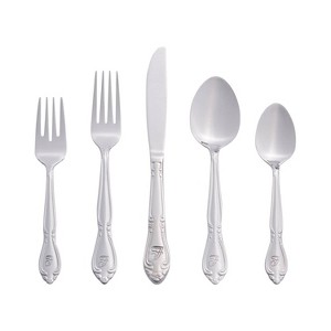 Our RiverRidge® Rose Stainless Steel Flatware Collection offers a timeless and versatile design, featuring delicate rose blossoms that complement any table setting. Our 46-piece flatware set with service for 8 and a 6-piece serving set is perfect for daily use and special occasions. Crafted from heavy gauge stainless steel, each piece has a polished mirror finish and is dishwasher-safe, ensuring lasting durability and easy cleaning. Available in non-monogrammed and personalized with a letter, our cutlery set adds a unique touch to every meal.