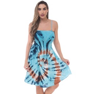 Whether its a day out shopping, casual afternoon lunch, or pool side party, this tie dye sundress will complement it beautifully. Weve designed it with removable and adjustable straps, giving you the freedom to wear it as a strapless dress one day, or a strapped dress the other. And thanks to the highly absorbent and quick-drying rayon fabric, this summer dress makes a great beach cover up too! Simply throw it over your swim suit and go on with your vacation in total style.