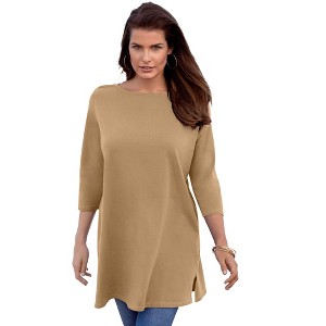 Roaman's Plus Size Cotton Ultimate Boatneck Tunic With Side Slits - 1 of 4