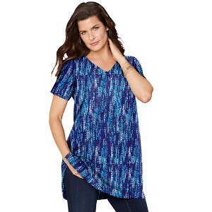 Roaman's Plus Size Cotton Short Sleeve V-Neck Ultimate Tunic - 1 of 4