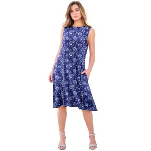 Roaman's Plus Size Stretch Knit Two-Pocket Swing Tank Dress - 1 of 3