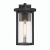 - Textured matte black metal and clear seedy glass outdoor wall light