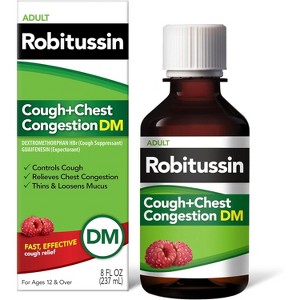Robitussin Cough & Chest Congestion DM Liquid Raspberry, Cough Suppressant & Expectorant, 8 oz