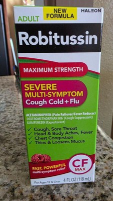 [This review was collected as part of a promotion.] This robitussin maximum strength severe multi symptom cough cold and flu works amazingly. It helped my family of 5 grt through the flu and lesson our symptoms. It definitely helped with our terrible flu symptoms. The instructions were easy to follow.it was soothing and didnt taste bad. I will definately be using this product again!
