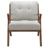 [This review was collected as part of a promotion.] After receiving and assembling the chair sent to me, here's my detailed review: Assembly was straightforward and manageable with two people, although it can be done solo with some effort. No additional tools were required beyond a hammer or rubber mallet for finishing touches. The cushion is firm and springy, providing good support, and I appreciate the neatly concealed springs on the bottom panel. The wood finish is aesthetically pleasing, and the fabric appears durable with a tight knit. However, there are a few aspects that didn’t quite meet my expectations. Firstly, the color and pattern of the chair are not to my taste, which was disappointing. Additionally, the wood covers for the screw holes don’t match the frame color, which affects the overall look. In terms of comfort, the chair’s height and angle aren’t ideal for me—I'm 5'4" and find that my feet often don’t touch the ground comfortably, and my elbows don’t reach the armrests comfortably either. Despite the images, the sitting position is actually quite upright. The seat is very firm but comfortable- I like that. Overall, while the chair has some nice features like easy assembly and good build quality, the pattern/color and comfort issues are issues for me. A taller person with longer arms and legs would likely not have the same issues.