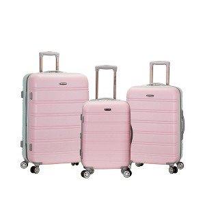 Rockland Melbourne 3pc Expandable ABS Hardside Checked Spinner Luggage Set - Pink/Mint - 1 of 4