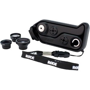 The RØDEGrip+ is a multi-purpose mounting solution with high-quality lens kit for the Apple iPhone 5, iPhone 5s, iPhone 5c, iPhone 4 and iPhone 4S. Featuring a camera-shoe mount with a 3/8" thread in the base that can be mounted in three different positions, the RØDEGrip can be used in a number of orientations and setups.The RØDEGrip+ is supplied with three high-quality photographic lenses (2x Telephoto, 180 degree fisheye, wide-macro) that screw into the frame to allow for versatile filmmaking on the iPhone. Constructed from durable, high-quality ABS plastics, it folds down into a small, portable form factor for ease of transport.