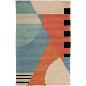 Introducing a beautiful addition to your living space, this contemporary gold area rug offers sophistication with its 5 ft by 8 ft medium rectangle design. Skillfully hand tufted in India, it combines wool and cotton with latex to create a masterpiece that stands at a height of 1/2 inch.