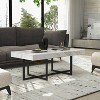 Elevate your living space with this Faux Marble Coffee Table. A spacious tabletop holds everything from magazines to afternoon drinks, while the sleek, neutral color scheme blends with your existing decor. Place this elegant coffee table in front of your sitting room sofa to serve dinner party appetizers, or station between a pair of armchairs in your family room to give your space a contemporary edge. Chic style comes home when with this rectangular coffee table.