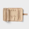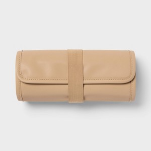 This Rolled Soft Side Organizer from Brightroom™ is your ultimate travel companion. This tan travel organizer features a zippered transparent pouch to securely pack your cosmetics, toiletries and other items. Plus, it has two belts to hold your rings and earrings, and a sleeve with loops to store necklaces, bracelets and chains. It's designed with a hook-and-loop closure and rolls up in a compact size for convenient storage.